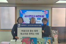 원스텝뉴스 이병희 기자 | 삼성전자3 어린이집이 20일 오목천동 장애인주간이용시설을 찾아 독서보조기기 ‘담뿍이’ 2대와 음원이 담긴 도서 20권을 전달했다. 이번 기탁은 어린이집 보육교사들이 참여한 동화 낭독 재능기부 활동 ‘다함께 성장 프로젝트’의 결과물이다. 교사들이 목소리를 담은 오디오북을 지역사회와 나누기 위해 추진했다. 독서보조기기 ‘담뿍이’는 사용자가 책을 소리로 접하며 쉽게 학습할 수 있도록 돕는 기기다. 함께 전달한 유아용 그림책·낭독 음원 도서와 더불어 주간이용시설 이용자들의 독서와 학습 접근성을 높이고, 정서적 안정과 문화 향유 기회를 확대하는 데 도움이 될 것으로 기대된다. 송지현 삼성전자3 어린이집 원장은 “보육교사들의 따뜻한 마음을 담은 오디오북과 도서가 아이들이 책을 더 친근하게 접하는 계기가 되길 바란다”며 “지역사회와 함께 성장하는 나눔 활동을 이어가겠다”고 말했다.