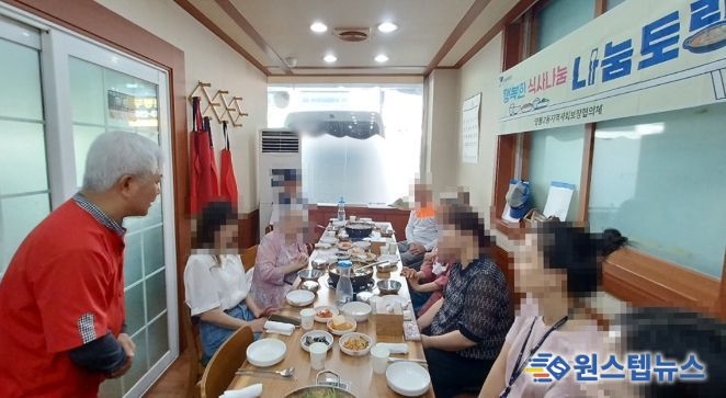 나눔토랑은 ‘나눔+레스토랑’의 의미로 홀몸어르신 및 수급가구 등 관내 취약계층과 경로당 어르신들을 모시고 식사나눔을 추진하는 행사이다. 이번 행사는 한가위 추석을 맞이하여 관내 경로당 회장님 및 취약계층을 모시고 이웃의 온정을 나누기 위해 엄지민물매운탕 음식점에서 매운탕을 비롯한 푸짐한 상차림을 대접했다.