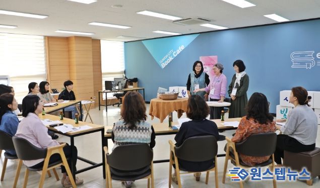이날 ‘작가와의 만남’에는 이달 초부터 권선구청 로비에서 수채화, 천연염색, 연자방 공예 등 다양한 장르의 작품 전시를 진행하고 있는 ‘색과의 만남’소속 김영숙, 고지연, 안서영 3인의 작가가 강사로 나섰다. 또한 이날은 특별히 황토를 이용한 손수건 천연염색 체험 수업도 이루어져 참여자들의 관심을 끌었다.