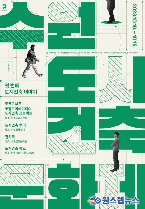 전시회는 10월 10일부터 15일까지 수원전통문화관에서 열린다. ▲수원 근현대 건축물 20선(사진전) ▲수원 건축사 작품전 ▲수원 도시건축 정책에 참여하는 민간 전문가의 도시 이야기(영상미디어전) ▲수원 도시자원(건축물, 공간, 문화재 등)에 대한 국내외 디자이너 100인의 재해석(국제 포스터전)을 주제로 한 기획 전시다.