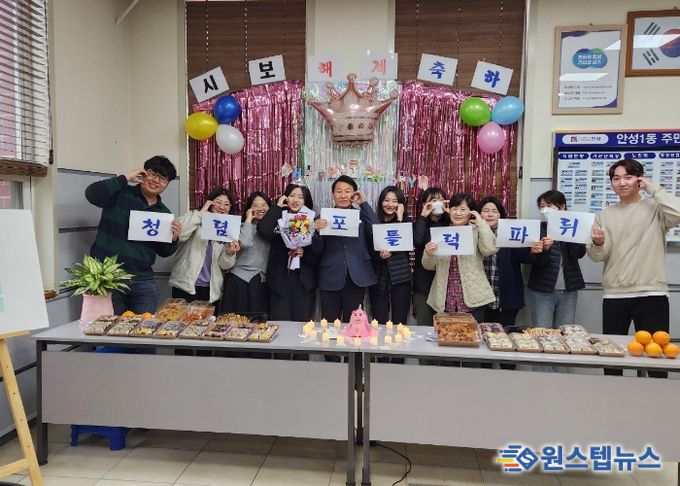 원스텝뉴스 이병희 기자 | 안성시 안성1동 주민센터에서는 지난 19일, 동장실에서 시보해제 축하! 청렴 포틀럭 파티를 열었다.