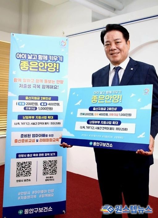캠페인의 첫 주자로 참여한 최대호 안양시장은 “저출생 극복을 위한 정책을 최우선 순위에 둘 수밖에 없는 절체절명의 시간이 됐다”며 “아이 낳고 키우기 좋은 안양시를 만들어 저출생 극복에 앞장서겠다”고 말했다.