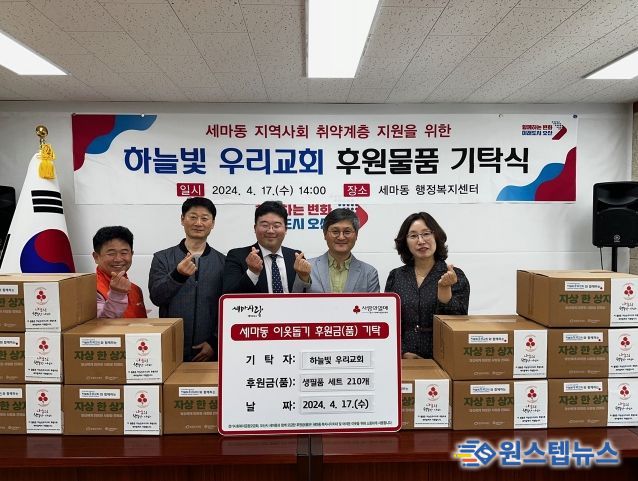 정은자 세마동장은 “온정으로 후원물품을 기탁해준 하늘빛 우리교회 관계자들께 감사하며 소외되는 이웃이 없도록 더욱더 노력하겠다”고 전했다.
