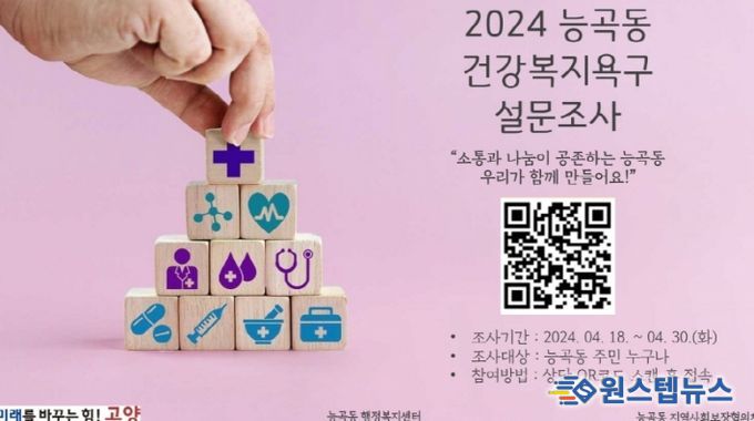 원스텝뉴스 이병희 기자 | 고양특례시 덕양구 능곡동 행정복지센터는 4월 18일부터 30일까지 2024년 능곡동 마을건강복지계획 수립을 위한 복지욕구조사를 실시한다고 밝혔다.