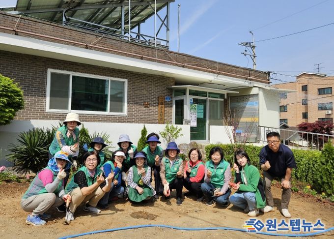 원스텝뉴스 이병희 기자 | 평택시 포승읍 주민들로 구성된 행복정원단이 19일 포승읍 원정5리 마을회관 앞 16㎡ 남짓의 작은 뜰에서 ‘행복정원’을 가꾸었다.