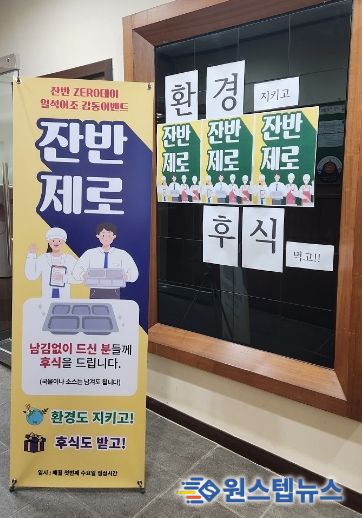 원스텝뉴스 이병희 기자 | 안양시 만안구청에서는 5일 ‘세계 환경의 날’을 맞아 구내식당에서 환경 문제에 대한 인식을 제고하고 음식물쓰레기 배출량을 감소시키기 위한 ‘잔반 ZERO 데이’를 진행했다.