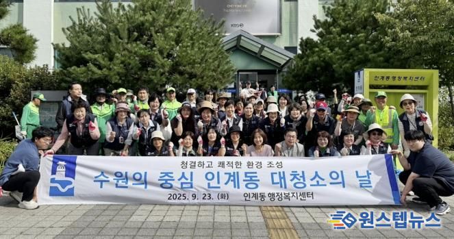 원스텝뉴스 이병희 기자 | 수원시 팔달구 인계동은 지난 23일 오전, 인계동 수원시청 부근 인계박스 및 장다리로 일대 등 화단과 대로변을 중심으로 인계동 단체, 환경 관리원 및 주민 등 70여 명과 함께 추석맞이 일제 대청소를 실시했다.