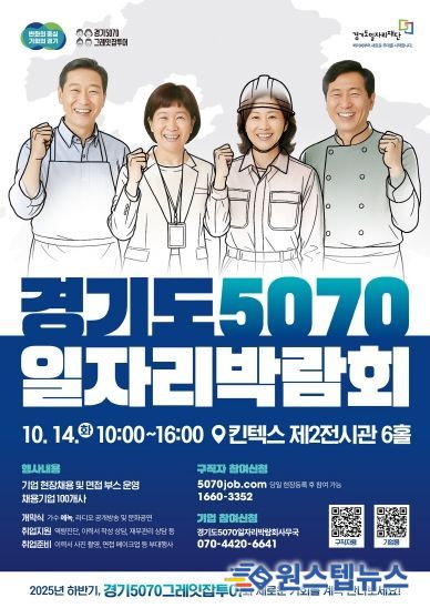 한편 이번 박람회는 ‘경기 5070 그레잇잡투어’ 사업의 하나로 진행된다. ‘경기 5070 그레잇잡투어’는 인구구조 변화와 중장년 구직 수요 증가에 대응해 재취업 지원과 상시 채용 환경 조성을 위한 50~70대 중장년 특화 일자리박람회로, 7월부터 12월까지 남·북부 광역박람회 및 시군별 지역박람회를 추진중이다.