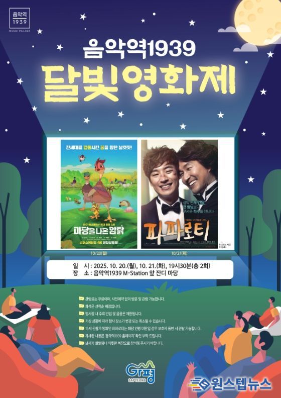 상영작은 △20일 오후 7시 30분 애니메이션 ‘마당을 나온 암탉’(전체관람가‧93분) △21일 오후 7시 30분 영화 ‘파파로티’(15세 이상 관람가‧127분)로, 음악역1939 특유의 감성적인 분위기 속에서 관객들에게 따뜻한 휴식과 여유를 선사할 예정이다.