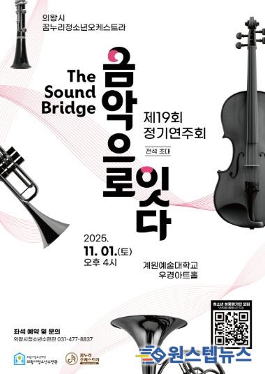 원스텝뉴스 천규영 기자 | 의왕시청소년재단 산하 의왕시청소년수련관은 오는 11월 1일 오후 4시, 계원예술대학교 우경아트홀에서 청소년오케스트라 ‘꿈누리오케스트라’의 제19회 정기연주회를 개최한다고 밝혔다.