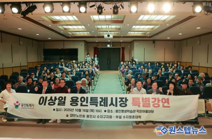 원스텝뉴스 천규영 기자 | 이상일 용인특레시장은 16일 오전 수지구 큰어울마당에서 대한노인회 용인시 수지구지회가 운영하는 수지청춘노인대학 어르신 100여 명을 대상으로 미술 특강을 했다.