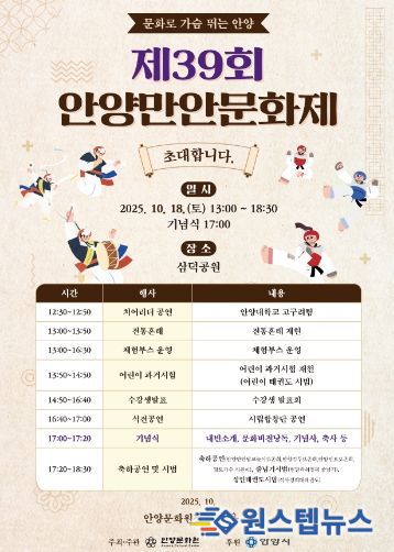 최대호 안양시장은 “한국 전통문화를 담은 콘텐츠가 세계적으로 큰 인기를 끌고 있는 만큼, 이번 행사가 우리 전통문화의 가치를 되새기는 뜻깊은 시간이 되길 바란다”고 말했다.
