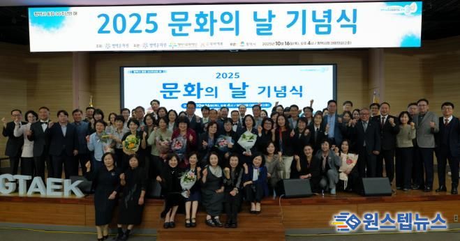 원스텝뉴스 천규영 기자 | ‘2025 문화의 날 기념식’을 10월 16일 오후 4시, 평택시청 대회의실에서 성황리에 개최했다. 이번 행사는 평택문화원이 주최하고, 평택문화원·평택시문화재단·(사)평택예총이 공동 주관했으며, 평택시가 후원했다.