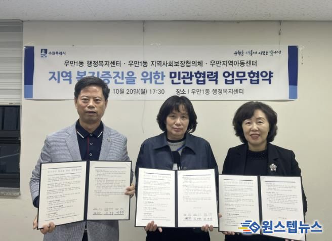 원스텝뉴스 이병희 기자 | 수원시 팔달구 우만1동 지역사회보장협의체, 행정복지센터는 지난 20일, 우만지역아동센터와 위기 아동의 조기 발견 및 지원 강화를 위한 업무협약을 체결했다.