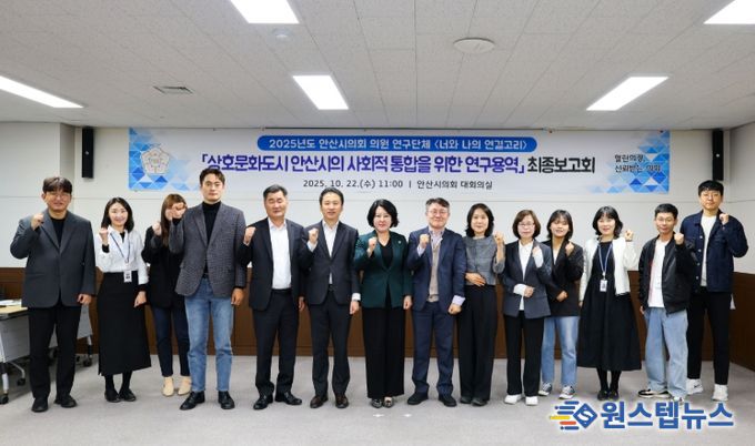 원스텝뉴스 이병희 기자 | 안산시의회 의원연구단체 ‘너와 나의 연결고리'(대표의원 황은화)가 22일 상호문화도시 안산시의 사회적 통합을 주제로 한 연구용역의 최종보고회를 개최했다.