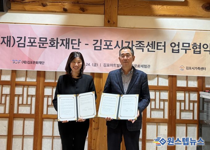 원스텝뉴스 천규영 기자 | (재)김포문화재단과 김포시가족센터는 10월 24일 김포아트빌리지 한옥마을 전통문화체험관에서 관내 가족문화 확산을 위한 업무협약을 체결했다.