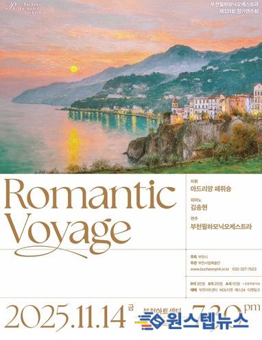 원스텝뉴스 천규영 기자 | 부천필하모닉오케스트라가 오는 11월 14일 오후 7시 30분 부천아트센터 콘서트홀에서 제331회 정기연주회 'Romantic Voyage'를 개최한다. 공연에는 상임지휘자 아드리앙 페뤼숑과 부천필이 무대에 오르며, 협연자로는 탁월한 음악적 이해력과 구성력으로 호평받는 피아니스트 김송현이 ‘낭만적 여정’에 함께 오른다.