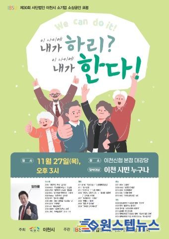 원스텝뉴스 이병희 기자 | (사)이천시 소기업·소상공인회는 오는 11월 27일 오후 3시부터 5시까지 이천신협 본점 대강당에서 ‘제30회 소상공인을 위한 초청 포럼’을 개최한다.