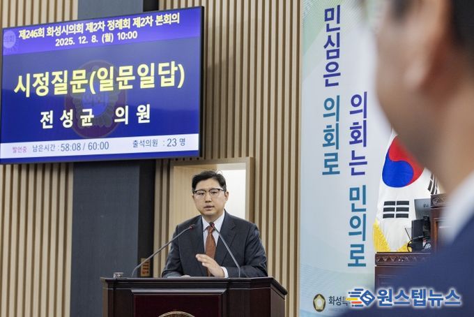 원스텝뉴스 이병희 기자 | 화성특례시의회 전성균 의원(개혁신당, 동탄4·5·6동)은 오늘 제264회 제2차 정례회 제2차 본회의 시정질문을 통해 화성시의 재정 악화, 공공기관 관리 부실, 조직 운영 혼선 등 시정 전반의 구조적 문제를 지적하며 “지금은 재정의 기초 체력을 회복하기 위해 결단해야 할 시점”이라고 강조했다.
