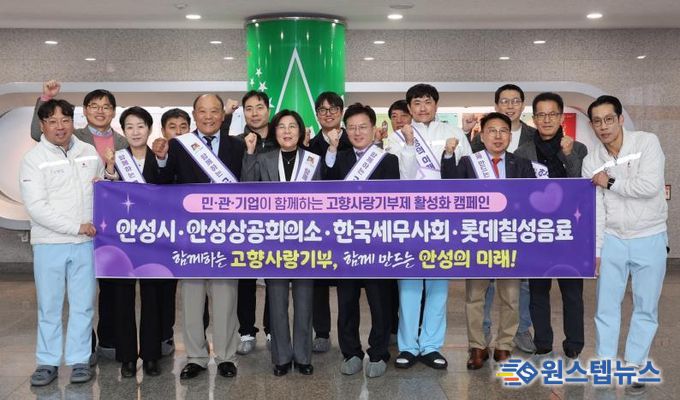 원스텝뉴스 이병희 기자 | 안성시는 15일 롯데칠성음료 안성공장에서 안성상공회의소 및 한국세무사회와 함께 고향사랑기부제 활성화를 위한 협력 의지를 공유하고, 민·관·기업이 힘을 모아 제도 확산에 동참하겠다는 공동 메시지를 전달했다고 밝혔다.
