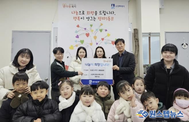 원스텝뉴스 이병희 기자 | 수원시 장안구 정자1동은 지난 16일 관내 시립북수원자이렉스비아어린이집이 연말을 맞아 재원 어린이와 학부모가 함께 참여한 플리마켓 운영 수익금 100만 원을 어려운 이웃돕기 성금으로 기부했다고 밝혔다.