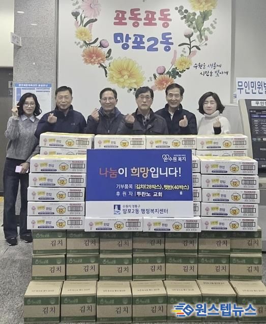 원스텝뉴스 이병희 기자 | 수원시 영통구 망포2동에 위치한 두란노교회는 지난 16일, 지역 내 취약계층을 돕기 위해 김치 28박스와 햇반 40박스를 망포2동 행정복지센터에 기탁했다.
