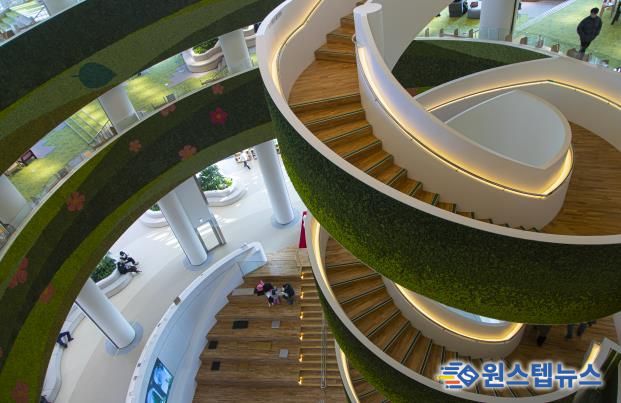 경기도서관은 2025년 10월에 개관한 신생 도서관이다. 지상 5층 건물은 나선형 구조와 창살 문양으로 설계되어 외관부터 남다르다. 문을 열고 들어서면 이곳이 단순히 책을 빌리는 장소가 아니라는 사실을 곧 알게 된다. 칸막이가 없는 동선 설계로 공간 전체가 하나의 거대한 서재 혹은 거실을 연상케 한다. 층과 층을 연결하는 길에는 ‘경기책길’이라는 이름을 붙였다. 벽면이 모두 통창이고 곳곳에 작은 정원을 꾸며놓아서 마치 숲에서 책을 읽는 느낌이 들기도 한다.