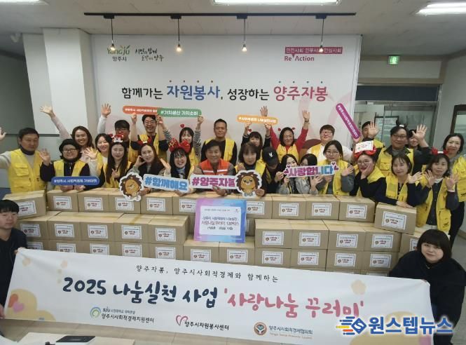 이번 행사는 2023년을 시작으로 3년째 이어지고 있는 사업으로, 사회적경제기업이 창출한 성과를 지역사회에 환원하고, 자원봉사 활동과 사회가치(ESG) 경영 실천을 연계한 사회공헌 모델 구축을 목적으로 운영되고 있다. 앞서 지난 12월 10일 열린 2025년 양주시 사회적경제 나눔장터 ‘기버마켓’을 통해 조성된 수익금 363만 원은 양주시자원봉사센터에 전달돼 이번 사업에 활용됐다.