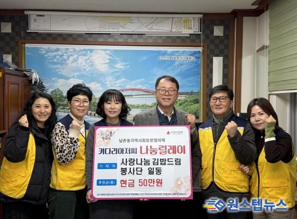 원스텝뉴스 이병희 기자 | 오산시 남촌동 행정복지센터는 지난 18일 ‘사랑나눔 김밥드림 봉사단’이 연말을 맞아 지역 내 어려운 이웃을 돕기 위해 성금 50만 원을 기탁했다고 밝혔다.