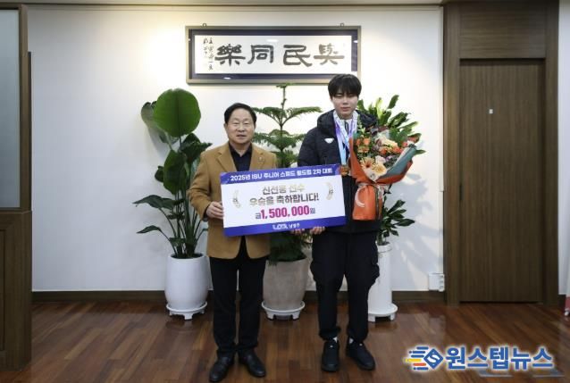 원스텝뉴스 이병희 기자 | 남양주시는 12월 18일 시장 집무실에서 2025년 ISU 주니어 스피드 월드컵 2차 대회에서 우승한 신선웅 선수에게 포상금을 전달하고 국제대회 입상 성과를 격려했다.