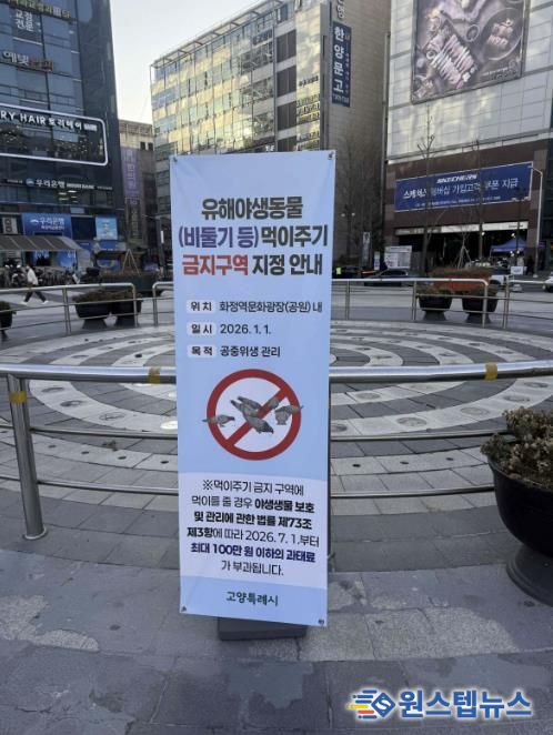 이는 지난 2025년 9월 30일 제정된'고양시 유해야생동물에 의한 피해 예방 및 관리에 관한 조례'에 따라 비둘기 등 유해야생동물로 인한 악취, 건물 훼손, 질병 전파 등의 피해를 줄이려는 조치다.