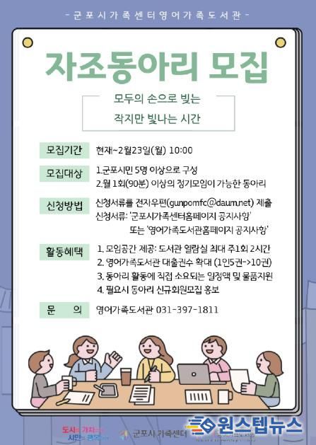 원스텝뉴스 이병희 기자 | 군포시가족센터 영어가족도서관(관장 박성희)에서 2026년 자조동아리를 모집한다.