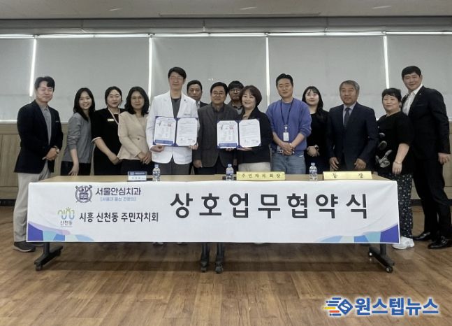 원스텝뉴스 이병희 기자 | 시흥시 신천동 주민자치회는 지난 3월 25일 신천동 행정복지센터에서 서울안심치과와 신천동 주민의 건강 증진과 의료복지 향상을 위한 업무협약을 체결했다.