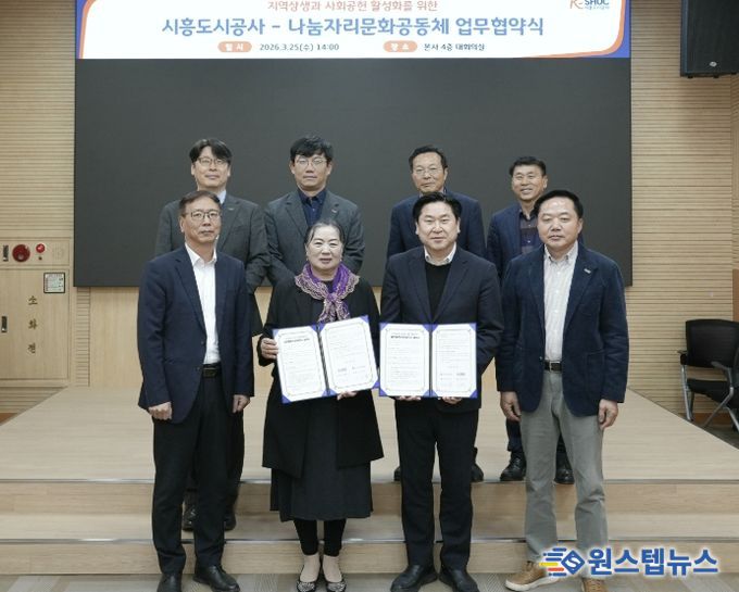원스텝뉴스 이병희 기자 | 시흥도시공사는 지난 25일, 나눔자리문화공동체와 지역상생과 사회공헌 활성화를 위한 업무협약을 체결했다고 밝혔다.