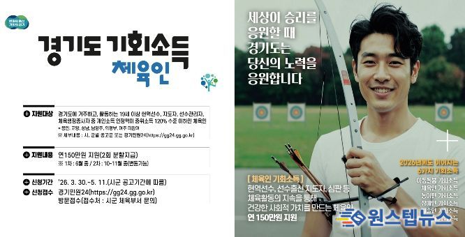 원스텝뉴스 이병희 기자 | 평택시는 체육인의 안정적인 활동 기반 마련과 지역 체육 발전을 도모하기 위해 추진하는 ‘경기도 체육인 기회소득’지원 사업을 시행하고, 참여 대상자를 3월 30일부터 5월 11일까지 모집한다고 밝혔다.