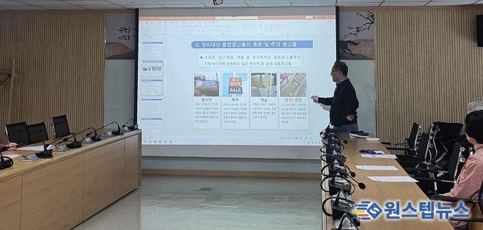 이날 교육은 2026년도 수거보상제 ▲사업운영 개요 ▲보상금 지급기준 ▲정비대상 불법광고물의 종류 및 주의 광고물 ▲안전사고 예방 요령 ▲수거보상금 신청 및 지급 절차 등 내용으로 구성됐다.