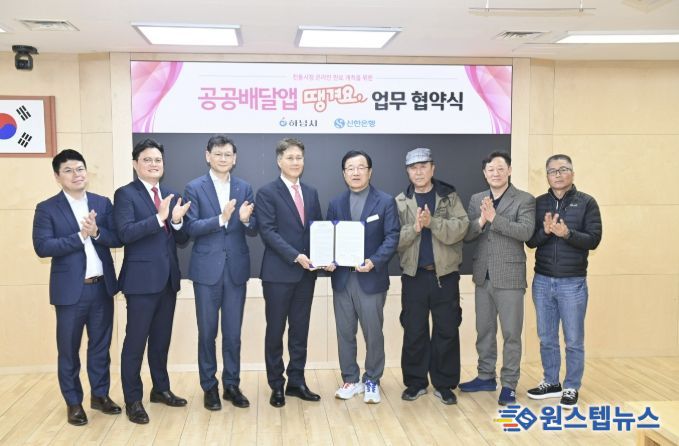 원스텝뉴스 이병희 기자 | 하남시는 3월 31일 시청 본관 2층 상황실에서 신한은행과 공공배달앱 ‘땡겨요’ 운영을 위한 업무협약을 체결하고, 전통시장 온라인 판로 확대에 본격 나섰다고 밝혔다.