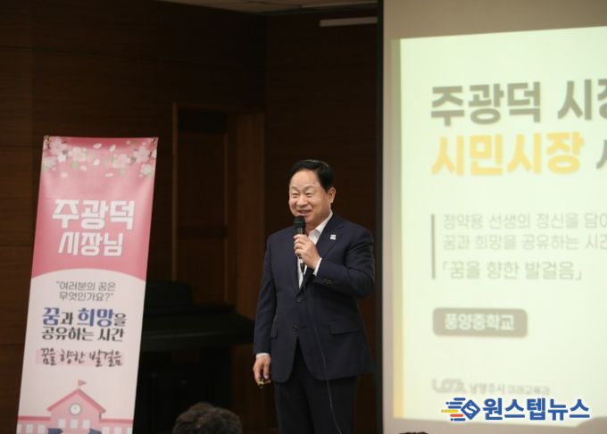 원스텝뉴스 천규영 기자 | 남양주시는 1일 풍양중학교에서 전교생을 대상으로 ‘꿈을 향한 발걸음’이라는 주제의 진로특강을 개최해 학생들과 소통의 시간을 가졌다고 밝혔다.
