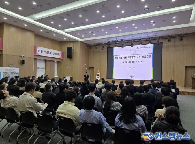 교육은 성과관리팀장이 ‘2026년 통합성과관리(BSC) 운영 계획’을 설명하며 성과관리 체계의 운영 방향과 평가 절차, 주요 개선사항 등을 공유했다.
