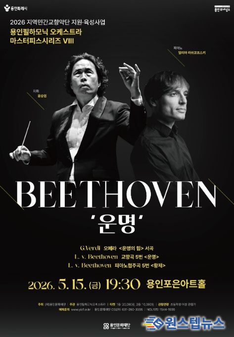 원스텝뉴스 천규영 기자 | 용인문화재단은 오는 5월 15일 오후 7시 30분 용인포은아트홀에서 ‘2026년 지역민간교향악단 지원·육성사업’의 첫 공연으로 용인필하모닉오케스트라의 기획공연 '마스터피스 시리즈 Ⅷ - 베토벤 ‘운명’'을 선보인다.