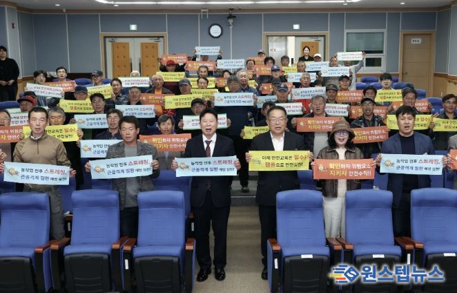 한편, 이날 행사에는 서태원 군수도 참석해 농민들과 함께 안전 실천을 다짐하고, “농업인들이 안심하고 생업에 종사할 수 있는 안전한 농업 환경 조성에 정책 역량을 집중하겠다”고 말했다.