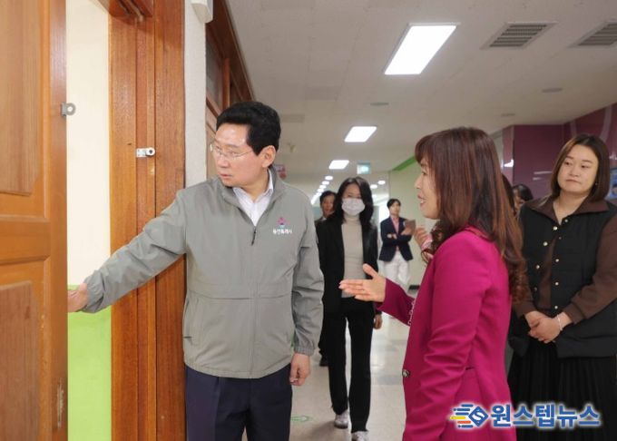 학부모들의 요청에 따라 진행된 이날 교통 봉사에서 이 시장은 교통지도에 앞서 학교 도서관 조성 현장을 방문해 교육환경 개선사업 추진 현황을 확인하고, 학교 관계자들과 함께 통학로와 학교 시설 전반을 점검했다.