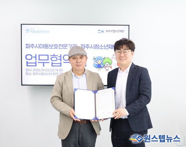 원스텝뉴스 이병희 기자 | (재)파주시청소년재단과 파주시아동보호전문기관은 파주시 아동 및 청소년의 건강한 성장과 복지 증진을 위해 상호 협력하는 업무협약(MOU)을 체결했다고 밝혔다.