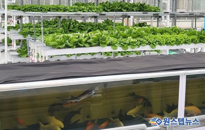 아쿠아포닉스는 물고기 양식과 수경재배를 결합해, 물고기 배설물로 식물을 키우고 식물이 정화한 물을 다시 물고기에게 돌려보내는 순환형 친환경 농업 시스템이다. 물고기 배설물이 박테리아에 의해 질산염 등 식물 영양분으로 변환되고, 식물이 이를 흡수하면서 물이 정화돼 다시 물고기 수조로 돌아간다. 물을 95~99%까지 재사용해 물 사용량이 적고, 화학비료·농약을 거의 쓰지 않아 친환경적이다.