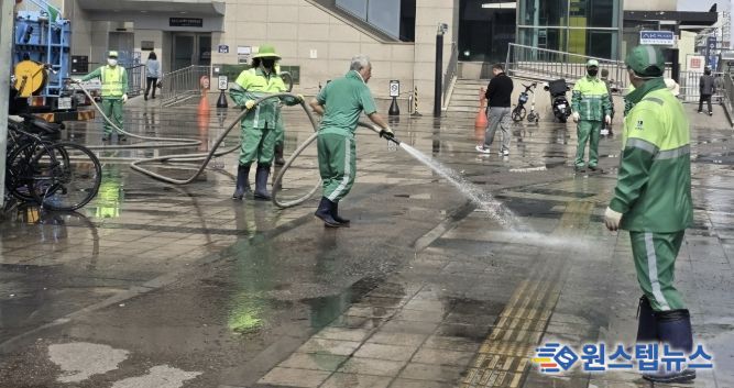 참여자들은 수원역 광장과 환승센터 일대에 적치된 폐기물을 수거하고 살수차를 활용한 물청소를 실시하는 등 환경 개선 활동에 힘을 모았으며, 고압세척장비를 활용해 보도 표면은 물론 오염이 쉽게 누적되는 구간까지 세심하게 세척 작업을 진행하여 쾌적한 거리 환경 조성에 앞장섰다.