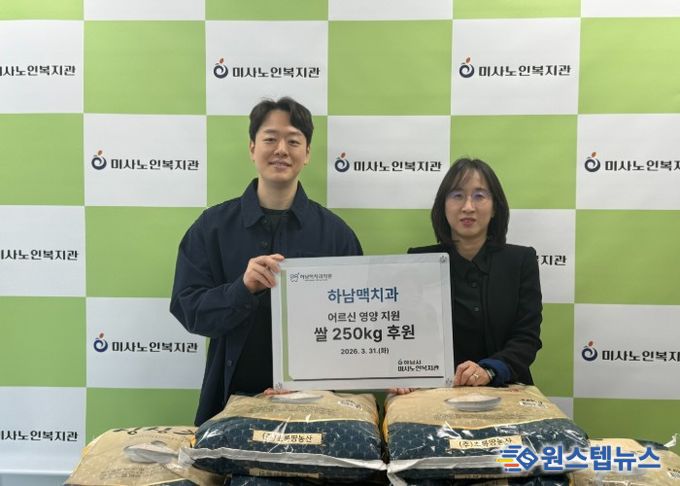 이번 후원은 하남맥치과에서 2026년 신규 사회공헌 활동으로 기획한 연간 쌀 1,000kg 지원 프로젝트의 일환으로 진행됐으며, 매 분기 250kg씩 후원이 이어질 예정이다. 하남맥치과는 복지관 1호 후원자로 이어오며, 정기적 물품 후원은 물론 문화공연 연계 등 다양한 사회공헌 활동으로 어르신의 삶의 질 향상에 기여해왔다.