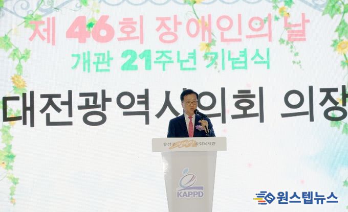 원스텝뉴스 이병희 기자 | 대전시의회 조원휘 의장은 9일 제46회 장애인의 날 및 유성구장애인종합복지관 21주년 기념식에 참석해 장애에 대한 편견을 허물고 지역 공동체의 결속을 다지는 계기를 마련했다.