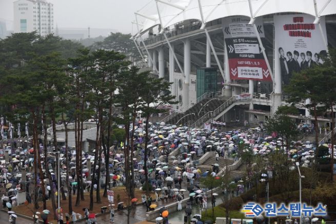 원스텝뉴스 천규영 기자 | ‘BTS 월드투어 아리랑 in 고양’이 열리는 고양종합운동장, 9일 비가 내리는 궂은 날씨에도 공연장과 인근 상가까지 BTS 콘서트를 즐기기 위해 방문한 국내외 관람객으로 가득찼다.