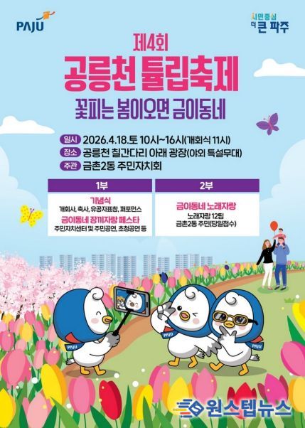 원스텝뉴스 천규영 기자 | 파주시 금촌2동 주민자치회는 오는 18일 공릉천 칠간다리 아래 광장에서 '제4회 공릉천 튤립축제'를 개최한다.