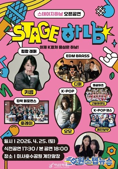 원스텝뉴스 천규영 기자 | 하남시와 하남문화재단이 추진하는 대표 문화공연 ‘2026 스테이지 하남!’이 오는 4월 25일 미사호수공원 계단광장에서 오픈공연을 열고 올해 운영의 본격적인 시작을 알린다.